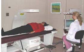 We use a technology called Dual Energy X-ray Absorptiometry (DXA) to measure the density of your bones. DXA is an X-ray technology which is the current “gold standard” method for bone mineral density measurements.