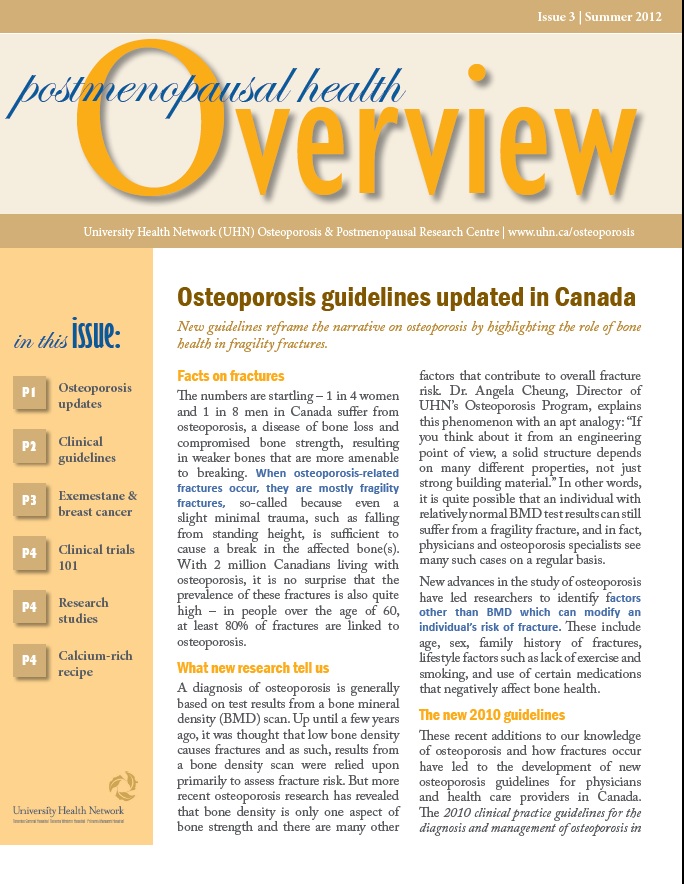 Postmenopausal Health Overview is our bi-annual newsletter for osteoporosis patients in our clinic and study participants.