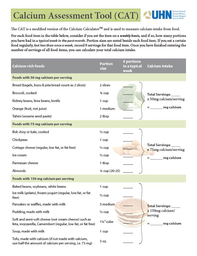 The Calcium Assessment Tool is used to measure how much calcium you are getting from your diet.